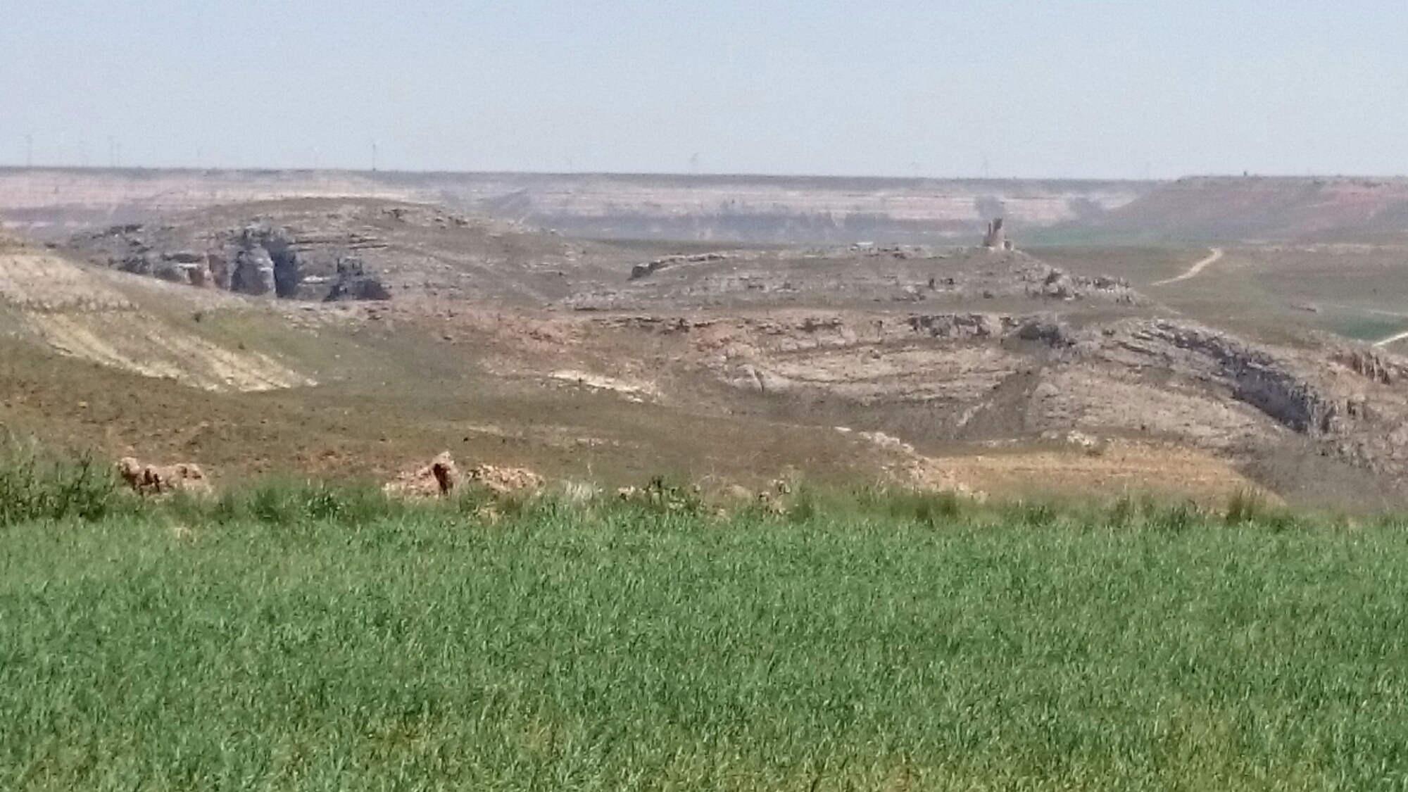 Every day it gets a bit warmer. Today 35 degrees in the afternoon, I’d better get started early. I will try to cycle most of the 140km to Jadraque in the morning. It was supposed to be flat even slightly downhill, euh actually not, hill after hill after hill. But every time I was arriving in a new valley, or on a new plateau, it was a surprise, the lanscape was different.